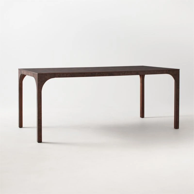 Ancient Roman aqueducts and high-speed trains are the inspiration behind this sleek, lacquered table from Euga Design Studio in Italy. Table flows continuously in dark Mappa burl veneer that nods to a vintage era. Fluid curve of each leg mirrors the sweeping, arched structure of the aqueducts—an architectural foundation for a stretch of Eurail tracks. Comfortably dines six, but will accommodate eight. Learn more about Euga Design Studio on our blog. CB2 exclusive.