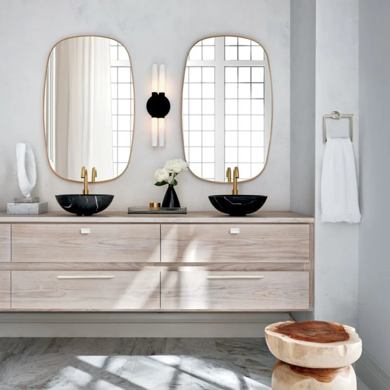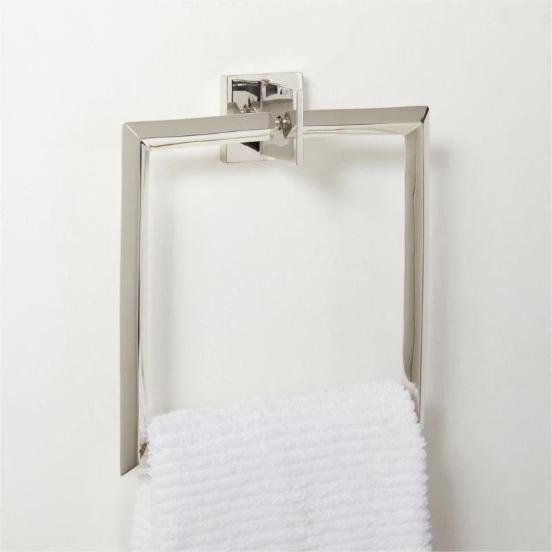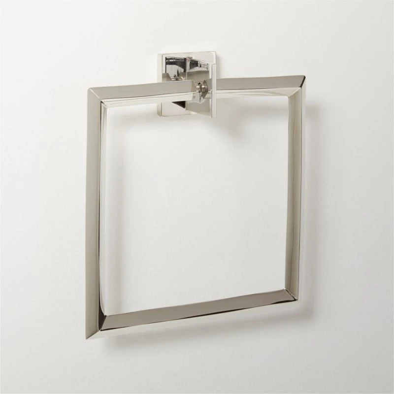 Designed by Barcelona-based Mermelada Estudio, unique beveled towel ring brings sharp lines and a touch of modern luxury to the bath. Solid brass construction is substantial in hand; its quality is obvious. Bathroom collection also includes wall mount hook, towel bar and toilet paper holder. Learn more about Mermelada Estudio on our blog. CB2 exclusive.