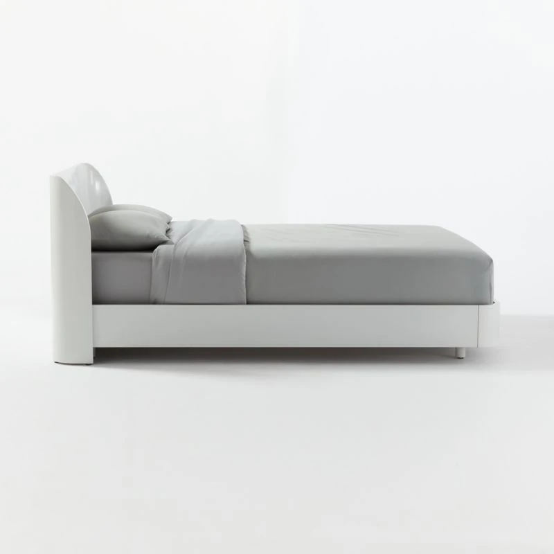 Bowed White Lacquered Queen Bed (Mattress Sold Separately). 66″Wx88.75″Dx35″H