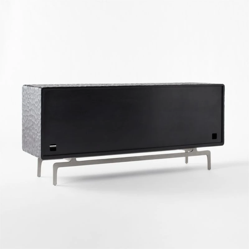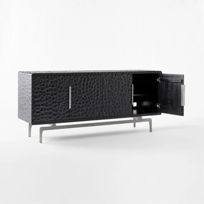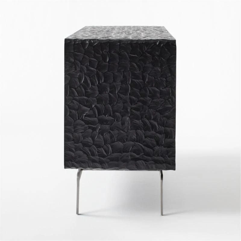 A showstopper of a credenza by Mermelada Estudio, deliberately designed to look as though it were carved out of one solid piece of wood. Blackened mango wood credenza is carved by hand to achieve the molded effect and sits on a solid stainless steel base. Cord management keeps things tidy. Learn about Mermelada Estudio on our blog. CB2 exclusive.