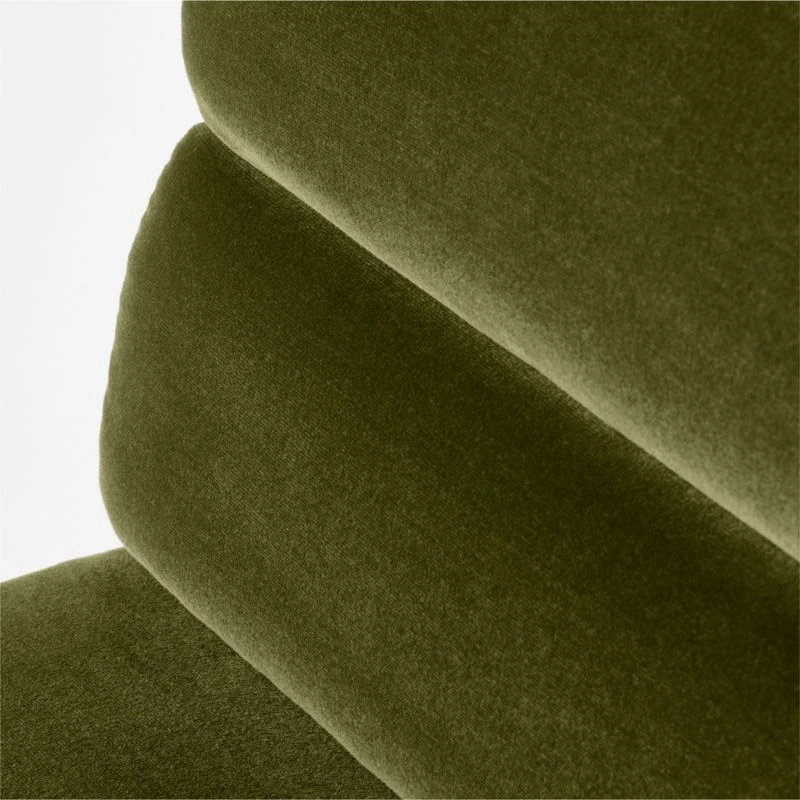 Designed by Brett Beldock, rich green dining chair brings a bold, architectural aesthetic to dining. Fully upholstered in tufted channels of soft velvet, dining chair stands up to dirt and stains. Wood frame is certified sustainable by the Forest Stewardship Council ®. CB2 exclusive.