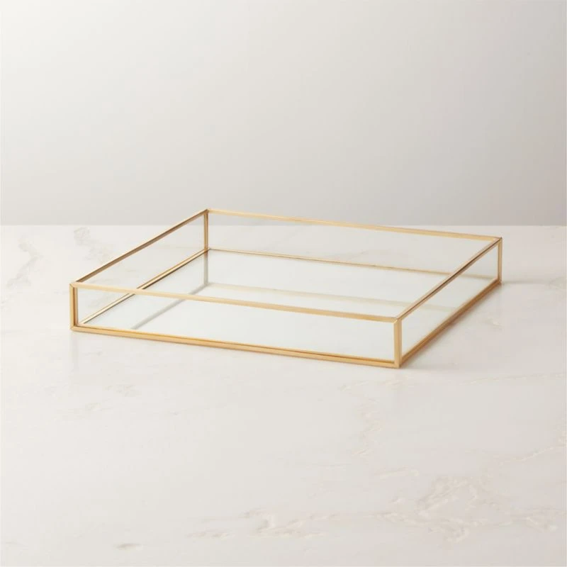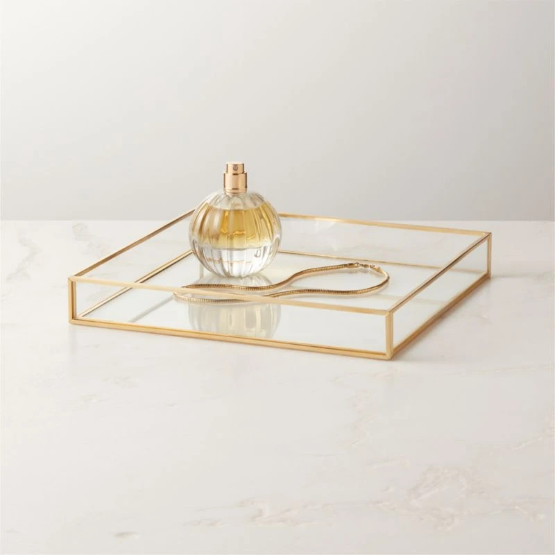 Cato Vanity Tray with Brass Trim 9″Wx9″Dx1.25″H