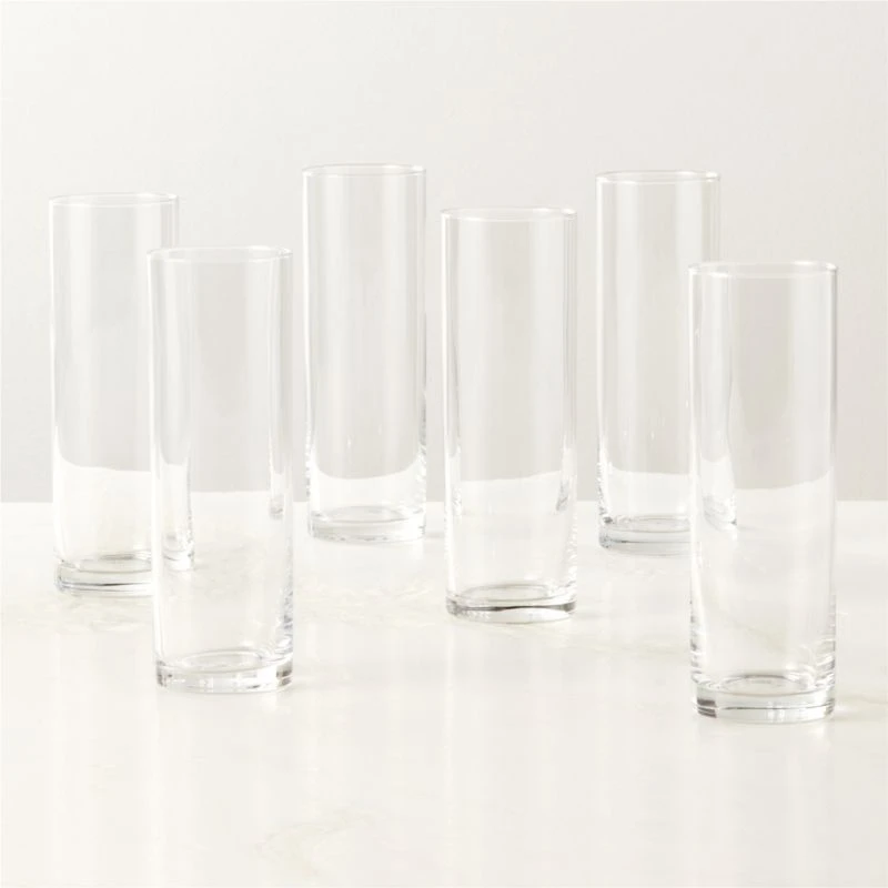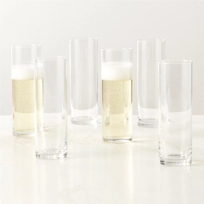 Ultra modern clear glass column keeps the bubbly flowing from stemless base to polished fired rim of this champagne flute set.