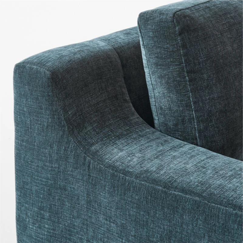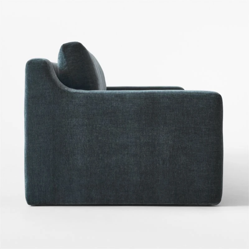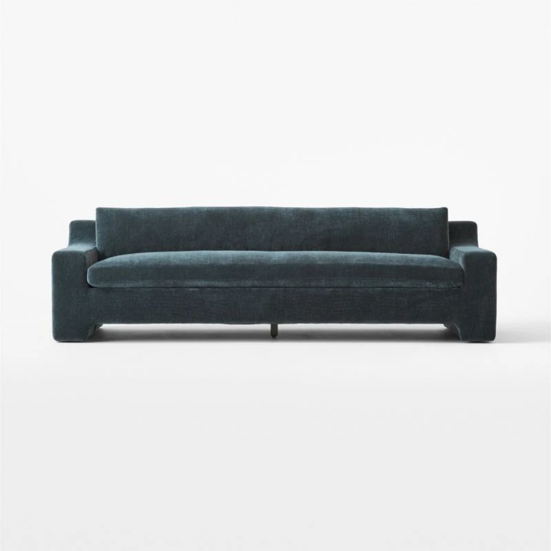 Sofa by VUUE makes a bold statement. Simple, structured frame contrasts with loose cushions, all fully upholstered in midnight blue performance velvet, —making this a striking design moment that’s well-equipped for everyday living. CB2 exclusive.