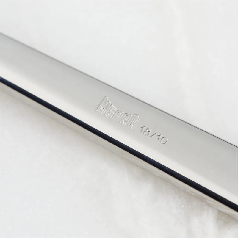 Made of the highest-quality 18/10 stainless steel for superior performance, sleek flatware set sports a polished finish and slim ergonomic handles. Each piece is crafted near the Italian Alps by Mepra, a family-owned company founded in 1947 and stewarded by three generations of the Prandelli family. Mepra flatware is frequently found in fine-dining restaurants and the homes of A-list stars due to its design, quality, and exceptional durability. Tested to withstand 400 commercial dishwasher cycles, it’s backed by a lifetime warranty. Includes one salad fork, one dinner fork, one knife, one teaspoon and one tablespoon.