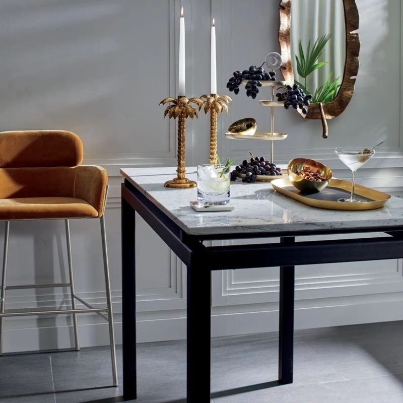 A classic and timeless serving piece turned on its edge, tilted serving bowl is handcrafted of ultra-thin stainless steel and plated with a champagne gold finish. CB2 exclusive.
