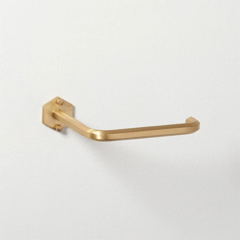 Graphic hexagon in warm brass elevates TP with chic sophistication. Pair with Hex towel bar to complete the look. Hex Brass Wall Mounted Toilet Paper Holder is a CB2 exclusive.