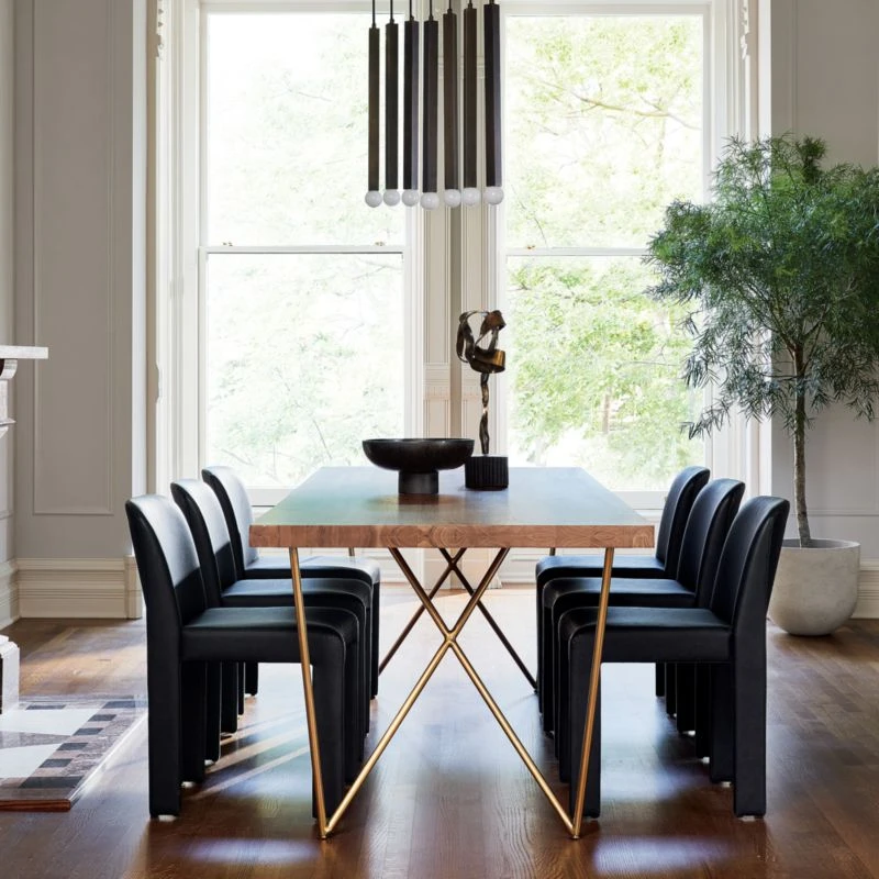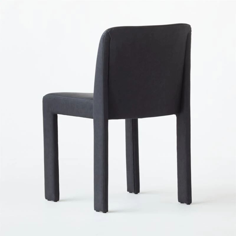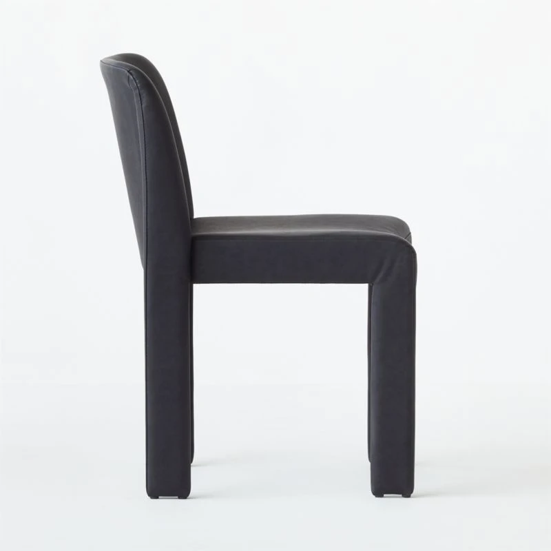 Super sleek dining chair upholstered from top to bottom in faux black leather. No hardware in sight. Padded seat and back add extra cushion, making this chair practically perfect. CB2 exclusive.