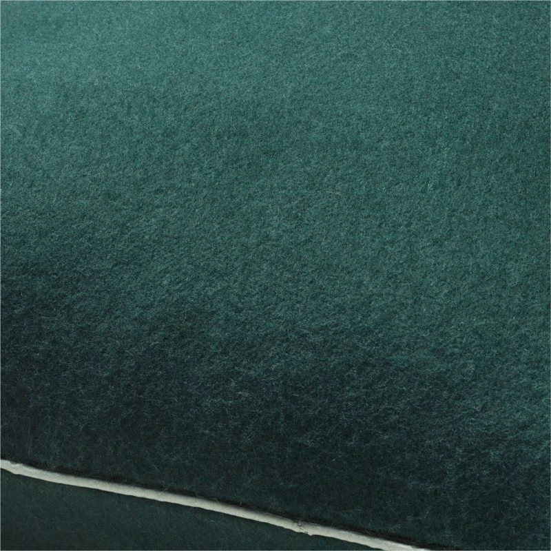 Perhaps the most luxurious way to add soft, cozy texture to any space. Breathable, light and warm, the bold dark green hue and light green silk piping add to the sophistication. CB2 pillows include a pillow insert in your choice of feather down or down alternative. CB2 exclusive.
