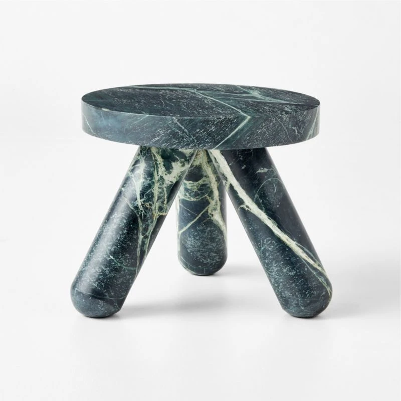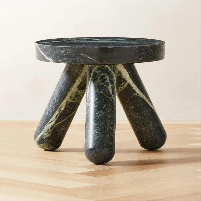 Designed by Studio Anansi, an unexpected side table turns furniture into art. Active green spider marble with striking cream tones and veining. Hand-finished with three rounded legs that look straight out of a modern art museum. CB2 exclusive.