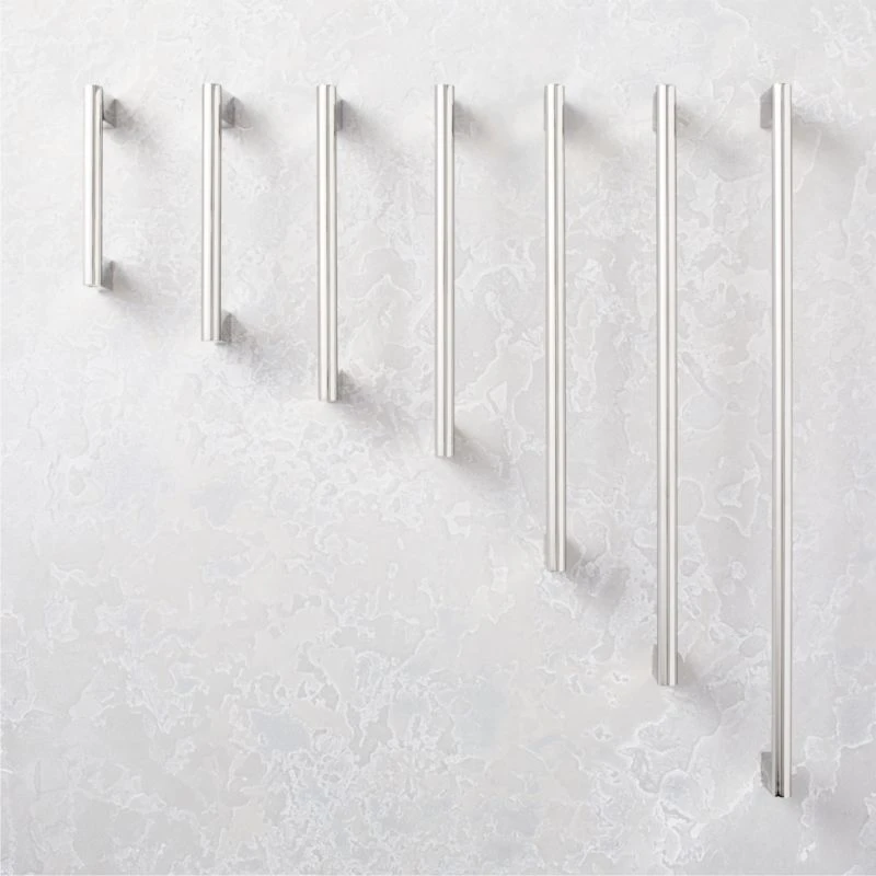 Mermelada Estudio mixes delicate design with solid brass construction in this sleek cabinet/drawer handle. Polished nickel finish adds a modern touch to the kitchen or bath. Learn more about Mermelada Estudio on our blog. CB2 exclusive.