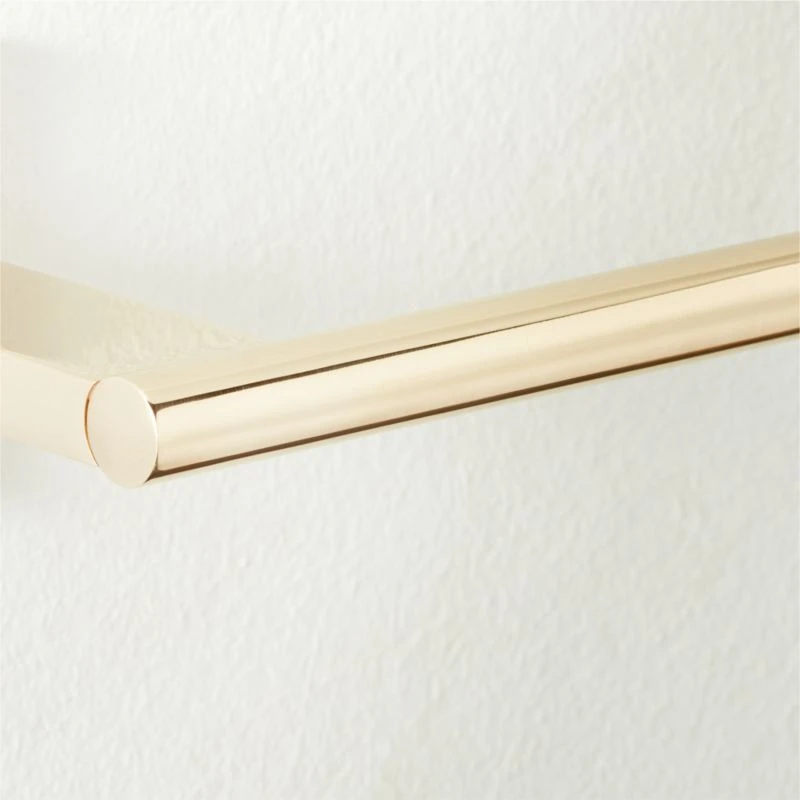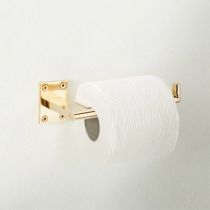 Mermelada Estudio mixes delicate design with solid brass construction in this sleek toilet paper holder. Polished brass is unlacquered for a living finish that will patina beautifully over time. Pair with the Kela knobs, handles, hooks and towel racks for a cohesive look. CB2 exclusive.
