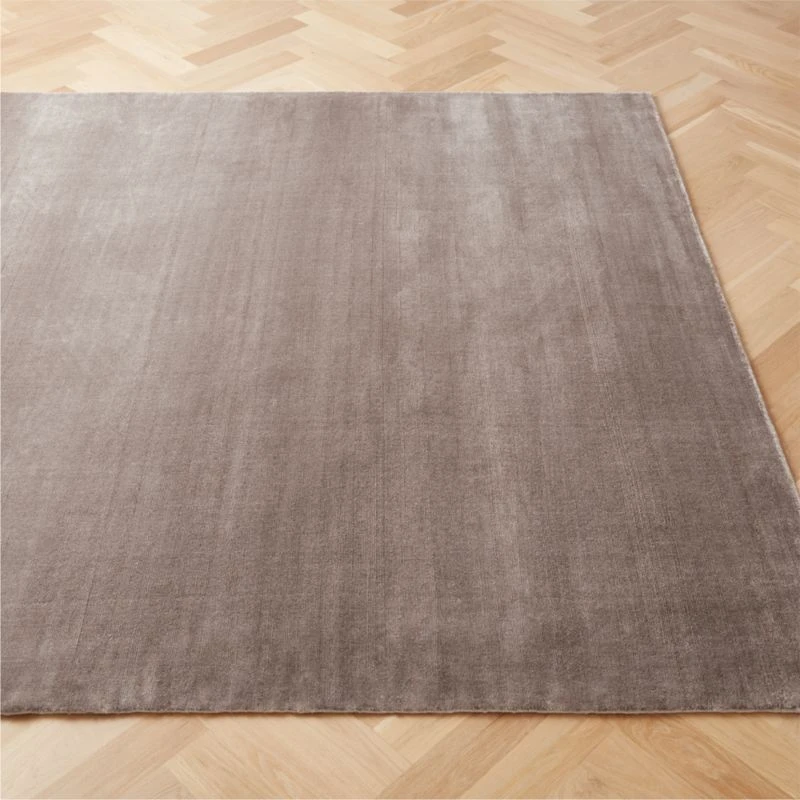 Soft brown performance rug creates a neutral, versatile foundation for any room. Perfect for high-traffic areas, nylon is extra-durable, resists stain absorption and is easy to keep clean. Because of the unique reflective quality of nylon, the silky area rug shifts in tone based on how light hits it. Extra-soft with a half-inch pile, this rug will stand the test of time. CB2 exclusive.