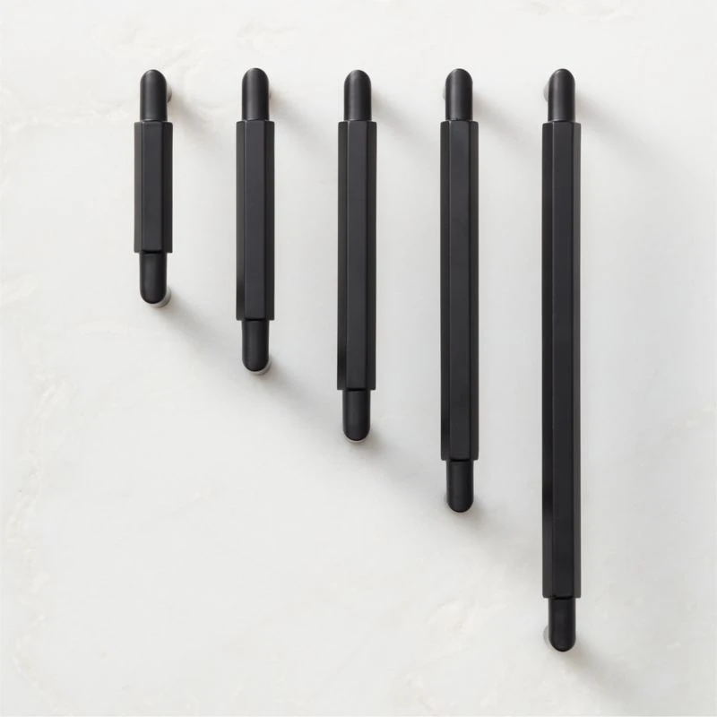 Bold hexagonal handle is inspired by the geometric architecture of French colonial pillars. Simple but modern form offers a pleasant heft with crisp, defined lines in black. CB2 exclusive.