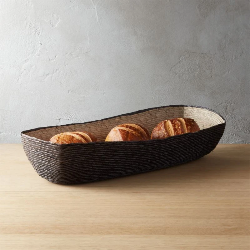 Lorena Long Oval Black Bread Basket. 14″Wx5″Dx2.75″H