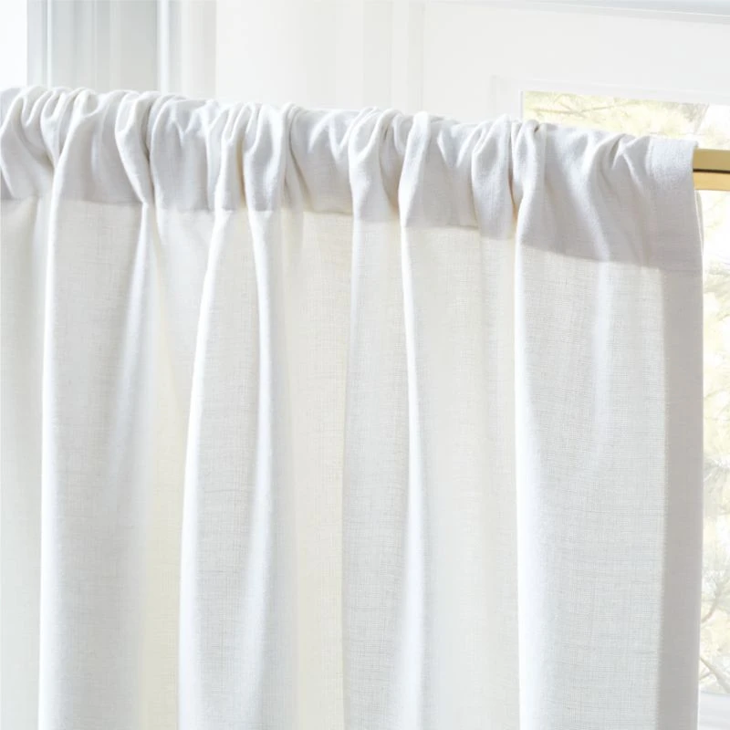 White silk and viscose blend panel drapes a slubbed texture on the windows that feels organic and earthy. Hangs naturally from back tabs, rod pocket or drapery hooks. CB2 exclusive.