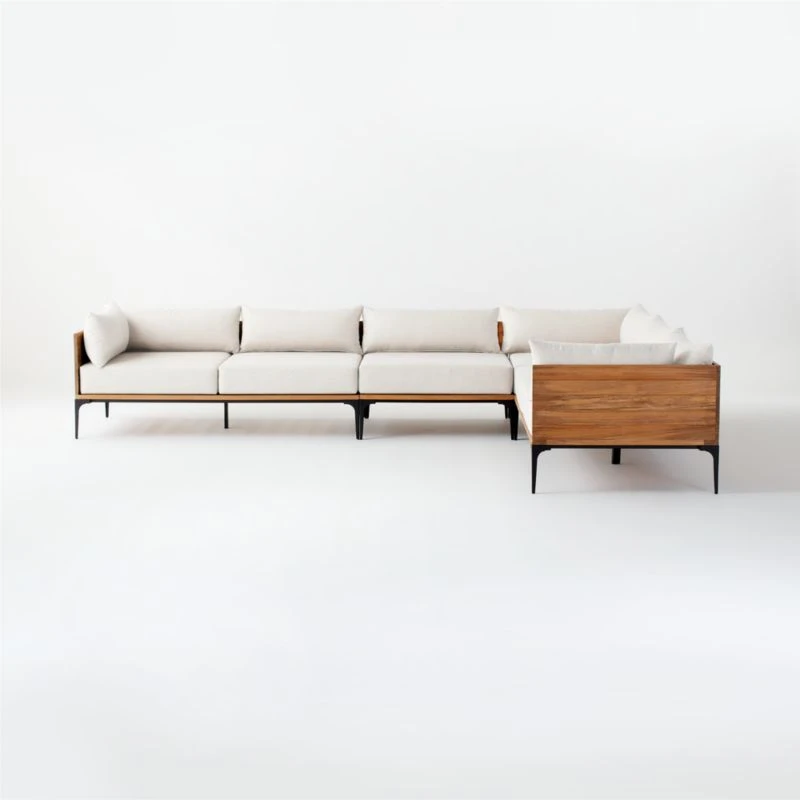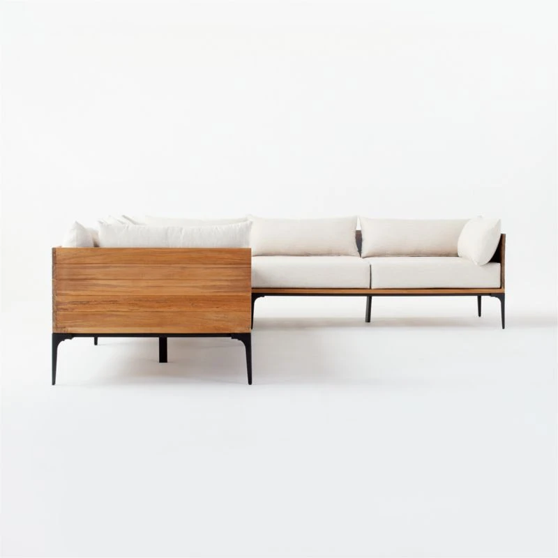 Naya 4-Piece Cast Iron and Teak Sectional Sofa with Ivory Sunbrella ® Cushions 34.25″Dx29.75″H