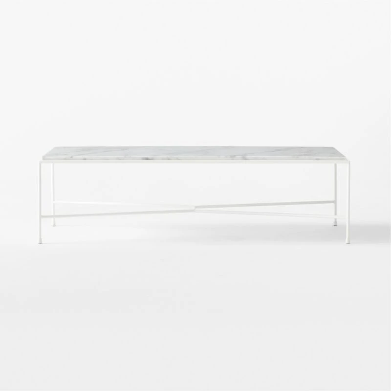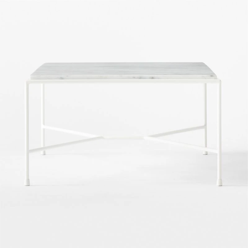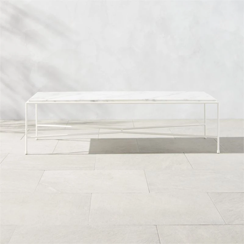 First introduced as part of the Cabana Group in Paul McCobb’s 1952 Pavilion Collection, this outdoor coffee table was designed to be durable, beautiful and easy to care for. White Venato Carrara marble top contrasts with the modernity of the solid satin ivory iron frame. The Pavilion Collection was featured in the June 1953 issue of House & Garden magazine in an original McCobb illustration, yet doesn’t feel at all out of place in a modern outdoor space or even an indoor living room. CB2 exclusive.