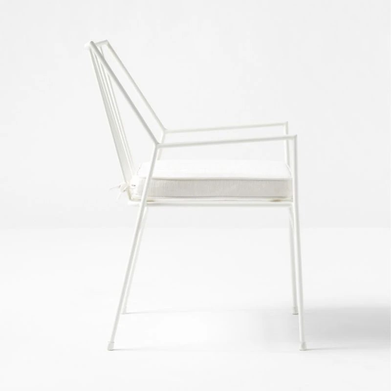 First introduced as a small lounge chair in the Living Room Group of Paul McCobb’s 1952 Pavilion Collection, this dining chair was designed to be durable, beautiful and easy to care for. Ivory solid iron frame will stand both the elements and the test of time, as will the reversible cushion in a coordinating textured chenille Sunbrella ® fabric. The Pavilion Collection was featured in the June 1953 issue of House & Garden magazine in an original McCobb illustration, yet doesn’t feel at all out of place in a modern outdoor space or even an indoor dining room. CB2 exclusive.