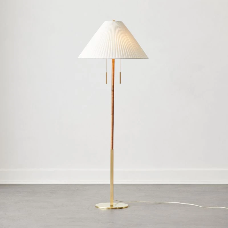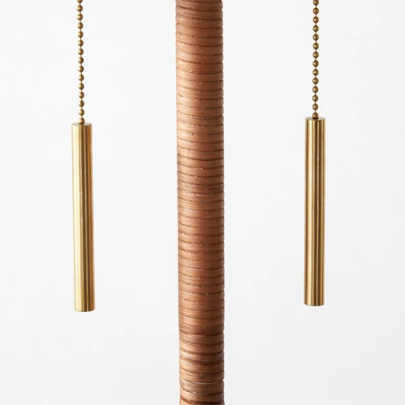 - Solid polished unlacquered brass base with natural cane wrap