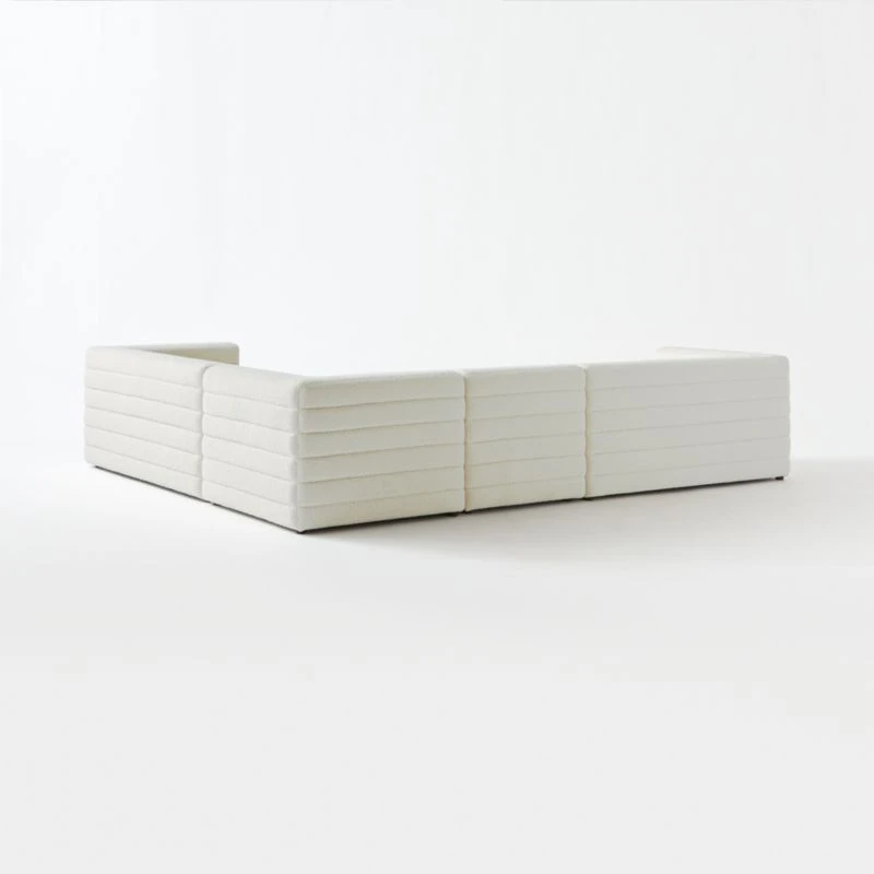 Strato 4-Piece L-Shaped White Boucle Sectional Sofa 125″Wx98″Dx27.5″H