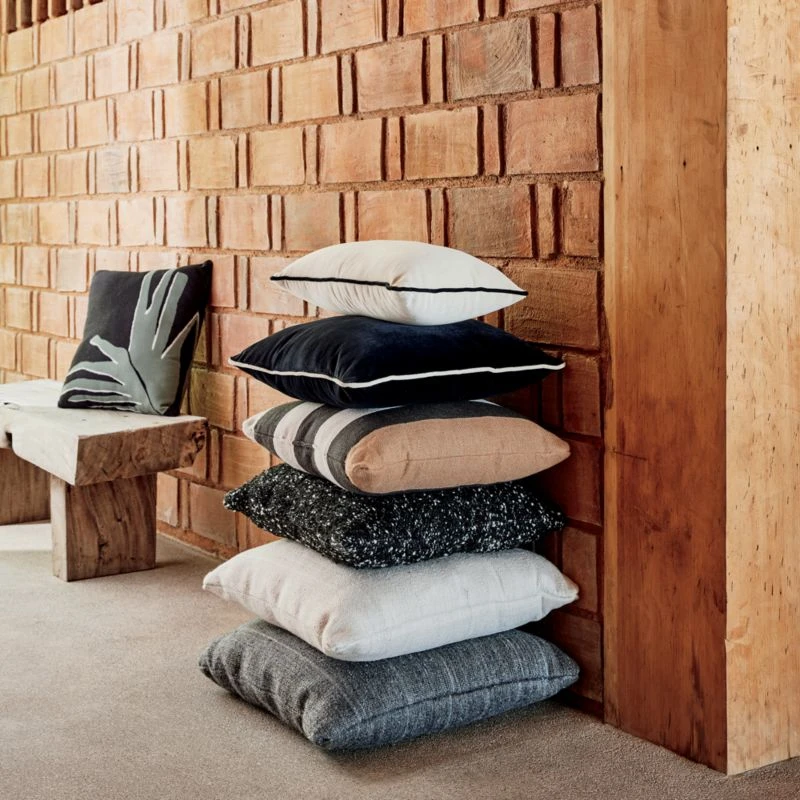 Ivory melange pillow brings the look and feel of traditional indoor textiles to the outdoors. Woven of recycled yarn on a traditional handloom, the thicker weave of ivory and tonal grey creates a beautiful melange effect, meaning no two pillows will be exactly alike. Design repeats on the back. CB2 exclusive.
